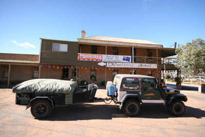The vegetation gets less and less... A picture in front of the Tibooburra Hotel - famous for its hospitality. Food is good.