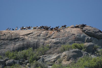 The goats driven crazy by the heli flying over - some of them did not do very well when jumping down the ledge.
