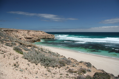 | The bay around Elliston, protected by a reef - nice for swimming and snorkeling if the water and the weather would be warmer. |