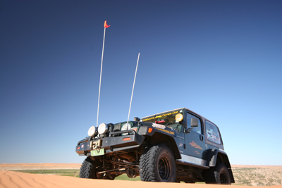 Preparation for Little Red first, letting tyre pressure down and heading towards the big sand dunes. On the right Big
