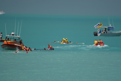 | In some heats the boats capsized - rescue was not far away... this time two of them could not finish the race. |