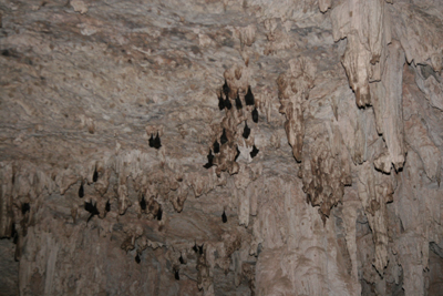 | Noises indicate something is happening around the cave ceiling. See the dark spots? |