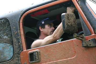 | Aaron with his "She'll Be Right" T-Shirt guiding Vic up the Rubicon. |